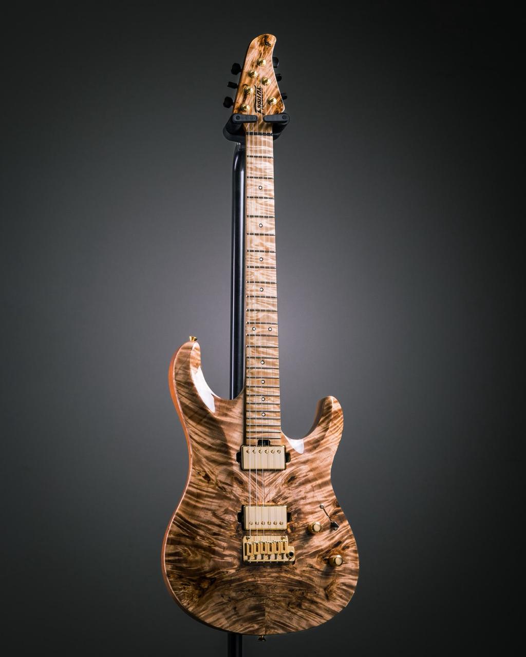 The Freitas IVX 24 510 HH BM-G unites a striking Burl Maple carved top with a 1-piece lightweight Mahogany body, creating a tone that is rich, expressive, and unmistakably alive.